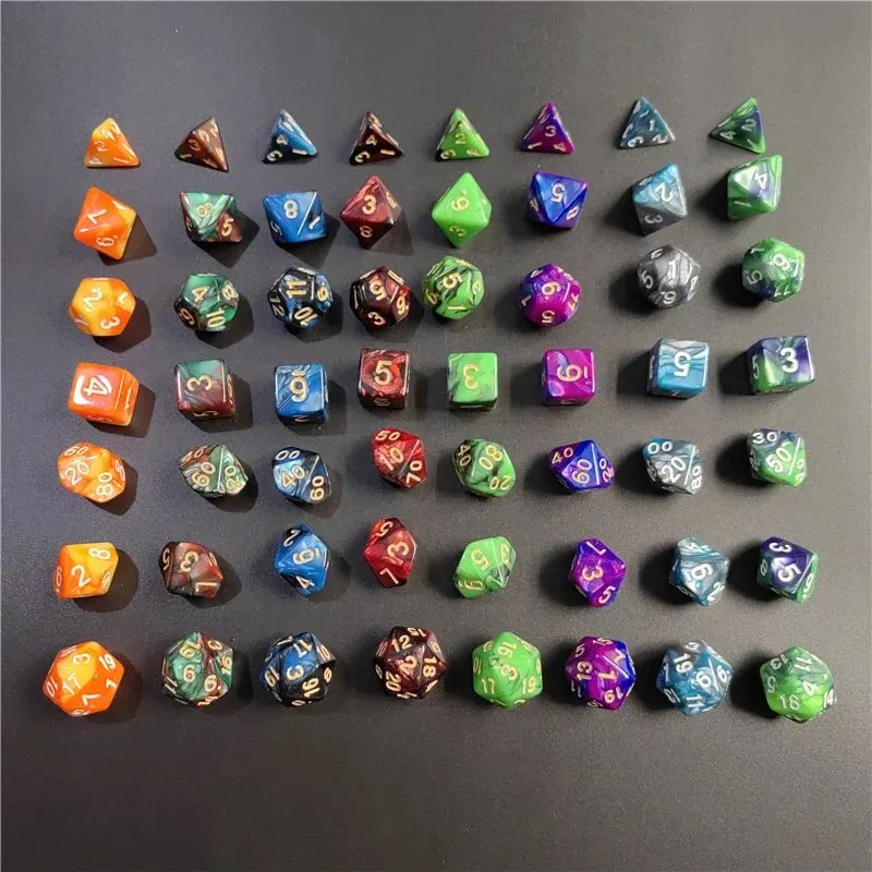 7개 1세트 갤럭시 시리즈 스타일 DND 다이스 세트 D4 D6 D8 D10 D12 D20 다면체 주사위 TRPG 던전 앤 드래곤 보드 게임용