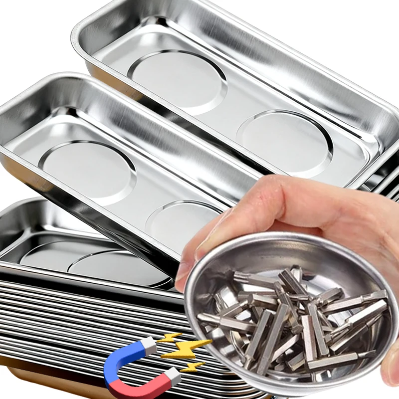 자석 트레이 자석 도구 홀더 원형 직사각형 자석 볼 도구 정리 트레이 스테인리스 스틸 소형 부품 안전 홀더