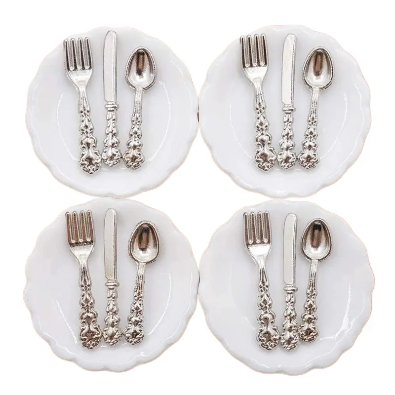 미니어처 주방 세트: 인형의 집 장식 장난감 (숟가락, 포크, 그릇 포함) - 주방 가구 장면 모델 및 장식용 선물