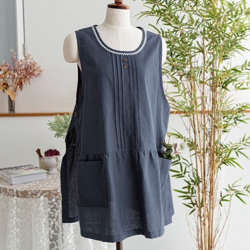 티엔 앞치마 면린넨 공방 주방 심플 러블리 레이스 원피스형