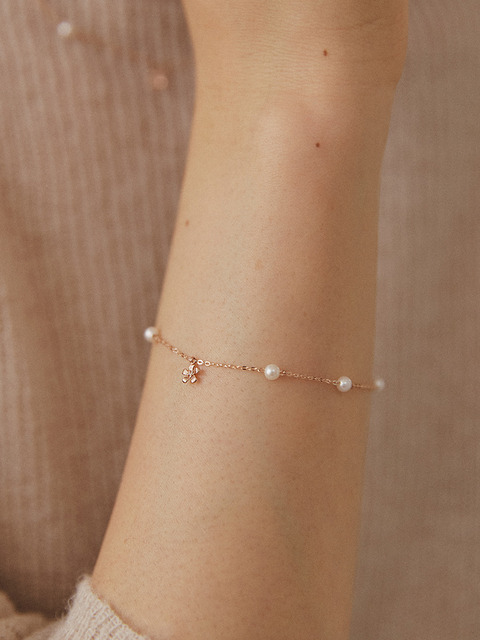 라운드 민자 스틱 두줄 팔찌14k화이트골드17.5cm