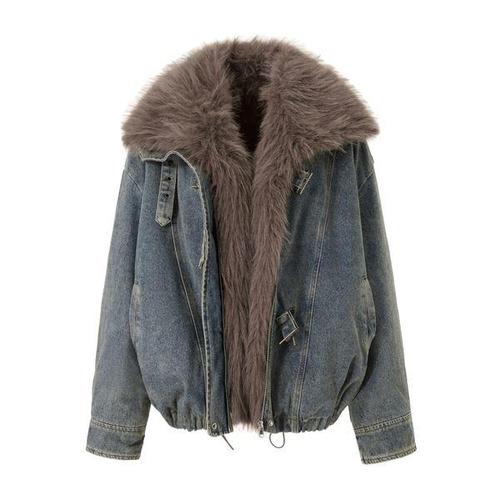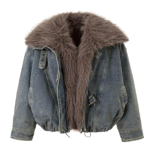[탱커스]퍼 탈부착 스트랩 집업 밴딩 데님 자켓 (TX4JK017L0)