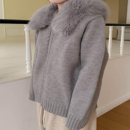 [엘루이즈][엘루이즈] 슈드벨 탈부착 퍼 카라 투웨이 니트 후드 집업(4color)