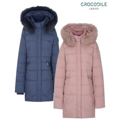 [크로커다일레이디]후드 탈부착 폭스퍼 덕 다운 패딩 점퍼 핑크 네이비