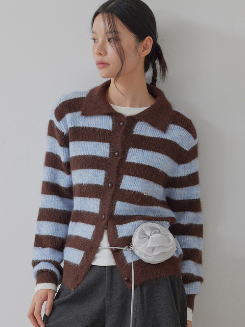 [탑걸] 헤어리 스트라이프 카라 가디건_T521TP106