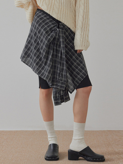 [탑걸] 레이어드 언발란스 실키 체크 스커트_T521BT710