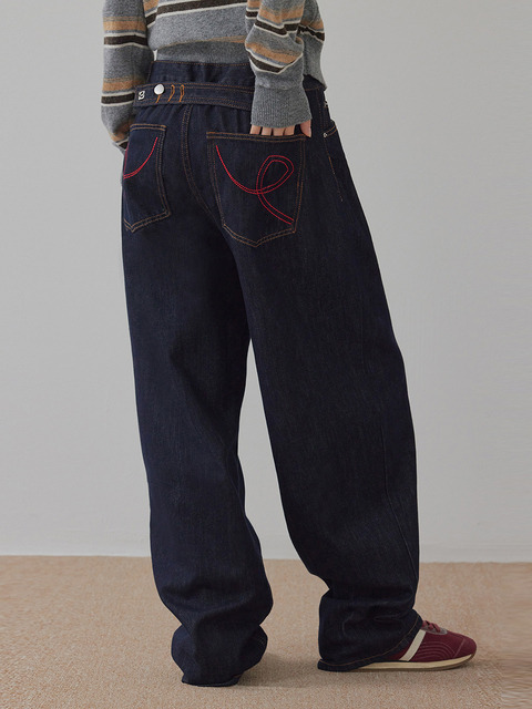 [탑걸] 백 버클 포인트 배색 생지 데님 진_T521BT709