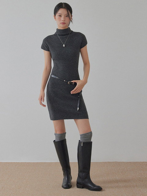 [탑걸] 하이넥 립 니트 숏 슬리브 드레스_T521DS500
