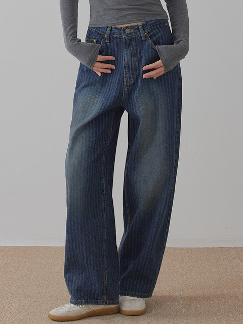 [탑걸] 스트라이프 그레인 데님 팬츠_T521DE400