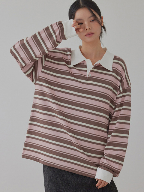 [탑걸] 멀티 컬러 스트라이프 폴로 셔츠_T521TP111