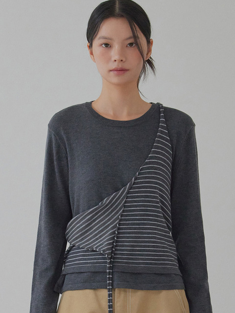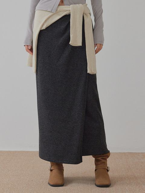 [탑걸] 리브드 니트 레이어드 랩 스커트_T521BT713