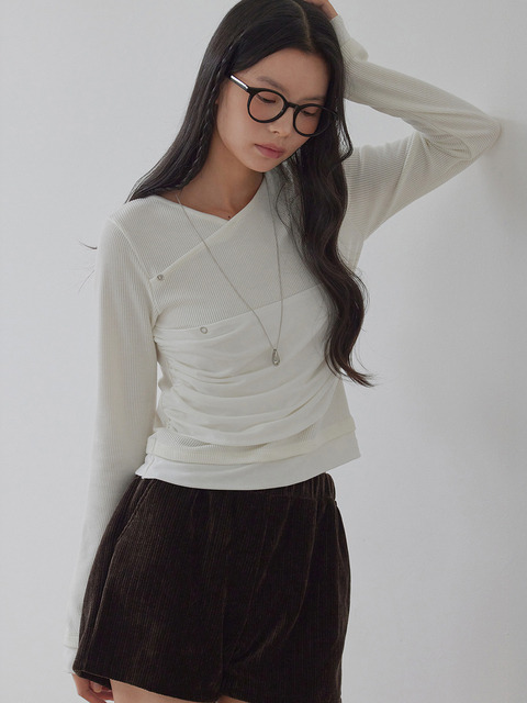 [탑걸] 스냅 투웨이 더블 레이어드 롱 슬리브 탑_T521TP105