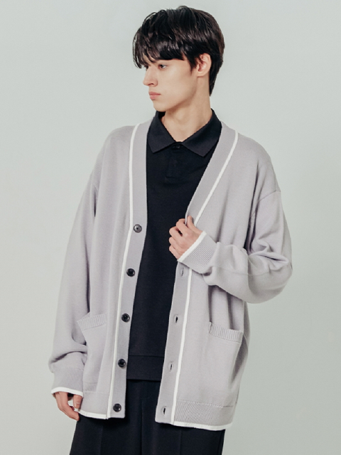 [애드호크] 남성 라인 배색 오버핏 카디건 (LT-GREY)