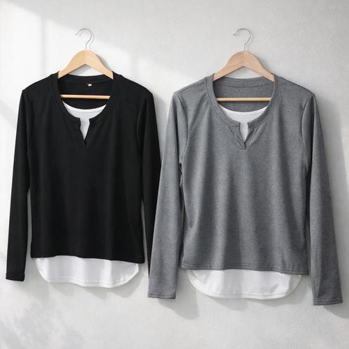 TEMU 크로스넥 베이스 레이어 여성 가을/겨울 긴팔 티셔츠 따뜻한 패션 탑