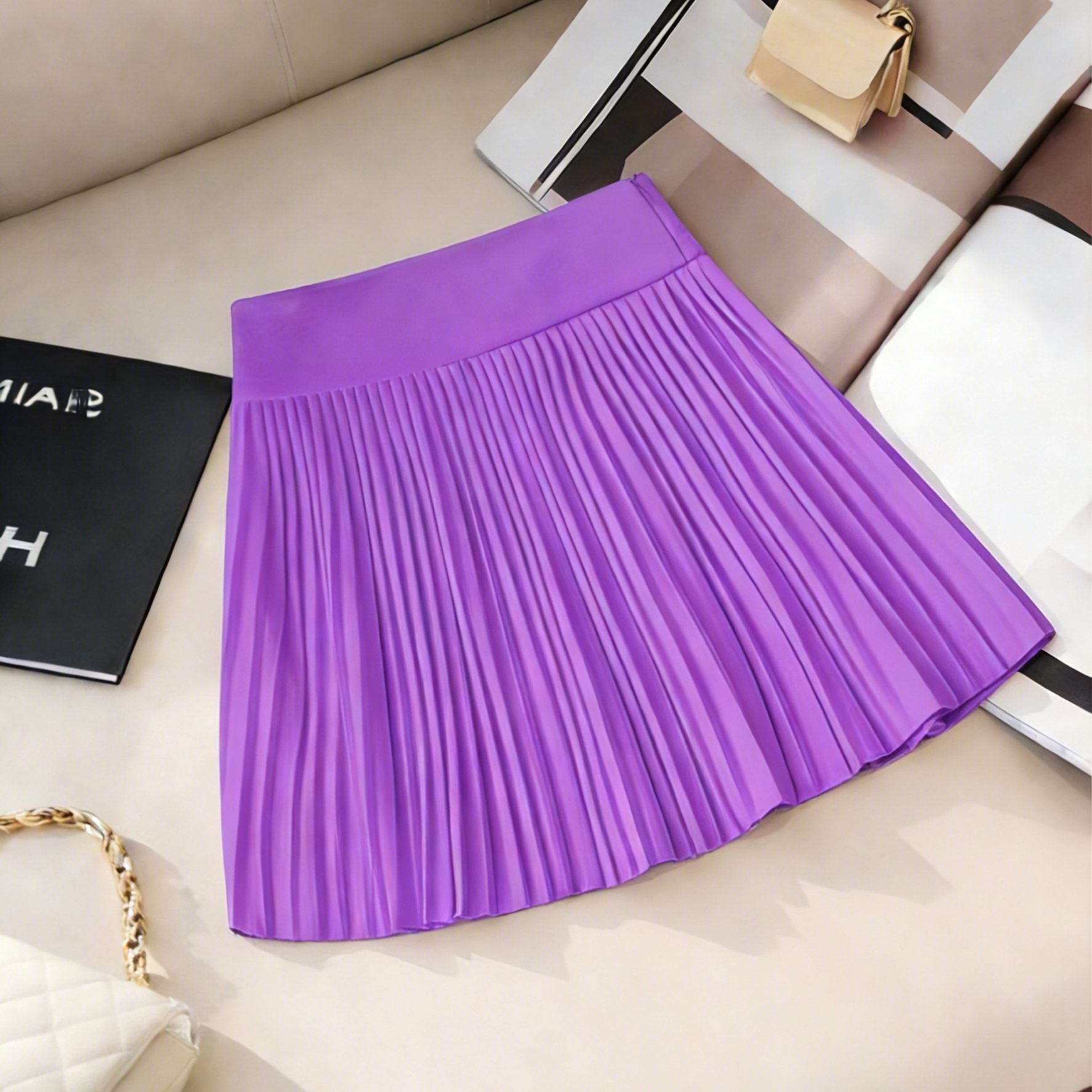 TEMU 여성 봄/여름 우아한 주름 숏 스커트, 단색 간편 다용도 스커트, 옆단 지퍼 디자인, 데일리 레저 외출, 통근, 해변룩에 적합, 우아한 스타일