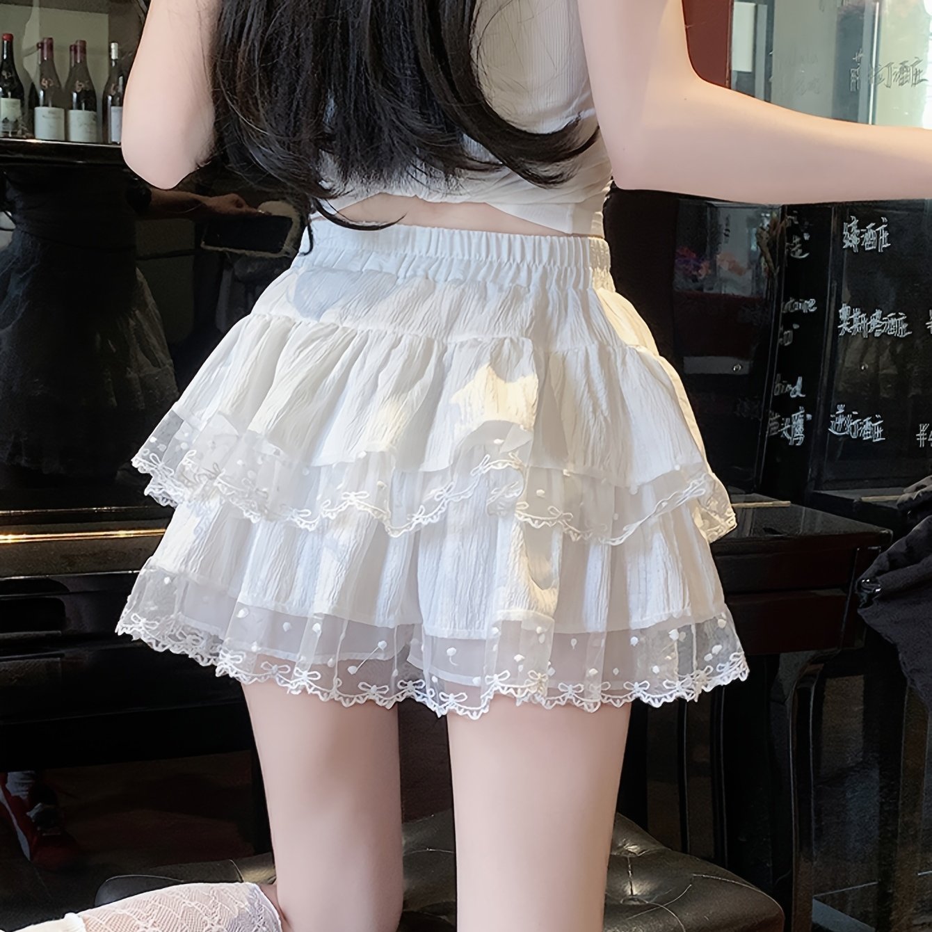 TEMU 2026 봄/여름 레이어드 레이스 스커트, 새로운 스타일의 레이어드 밑단 언더스커트, 흰색 허벅지 가리개 레이스 러플 미니 스커트, 레이스 러플 숏 레이어드 앞치마 밑단 스커트, 하프 스커트