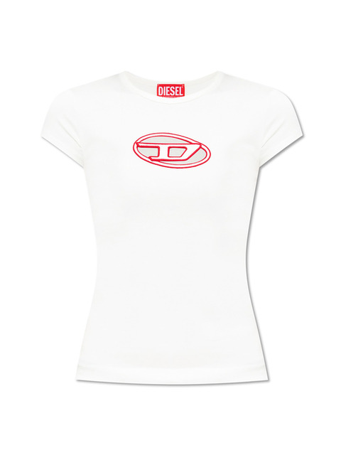 [디젤] 디젤 T 안지 피카부 로고 반팔 티셔츠 여성 화이트 레드 A06268 0AFAA 141A