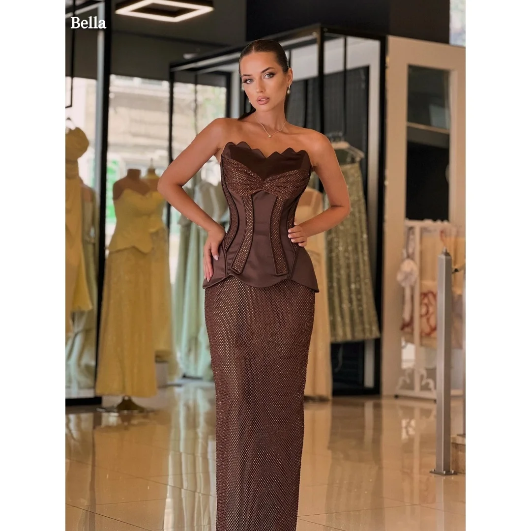 Flavinke 맞춤형 웨딩 드레스 스팽글 진주 신부 볼 가운 Strapless 민소매 공주 신부 드레스 Vestidos De Novia