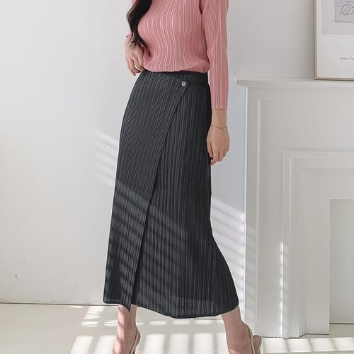 [옷자락] 여성 단추 랩스커트 여성스러운 밴딩 플리츠 롱 치마