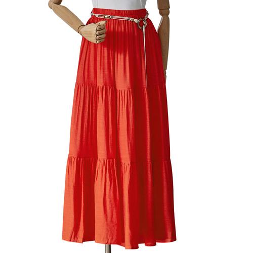 TEMU 단색 컬러 하이웨이스트 스커트, 우아한 플리츠 A라인 미디 스커트, 봄 & 여름용 여성 의류, 우아한 스타일, 기존 버전, ALL/글로벌/모두
