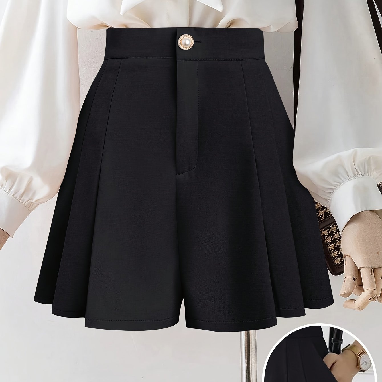 TEMU 솔리드 컬러 미니 스커트, 우아한 플리츠 A라인 블랙 스커트, 데일리 웨어에 적합