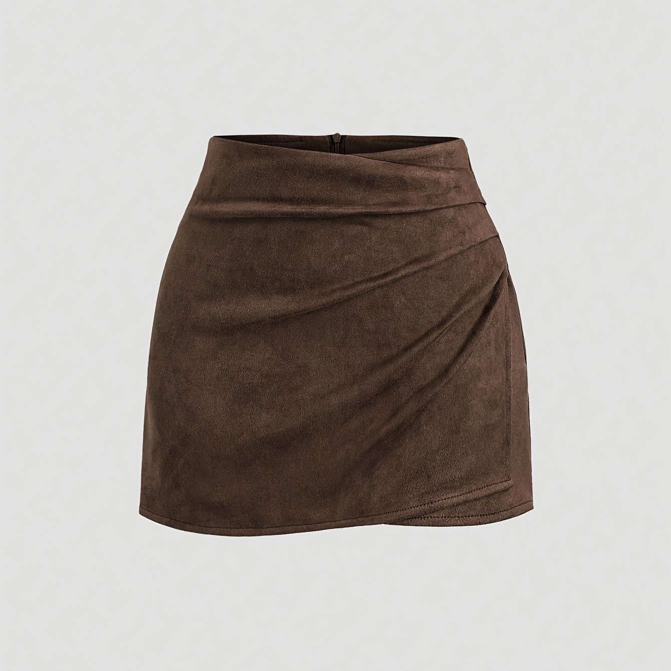 TEMU 새로운 여성용 패브릭 플리츠 A라인 스커트 (전면 지퍼, 탄성 있는 뒷 허리, 허리 주름, 중간 허리, 캐주얼, 편안함, 우아한 반바지)