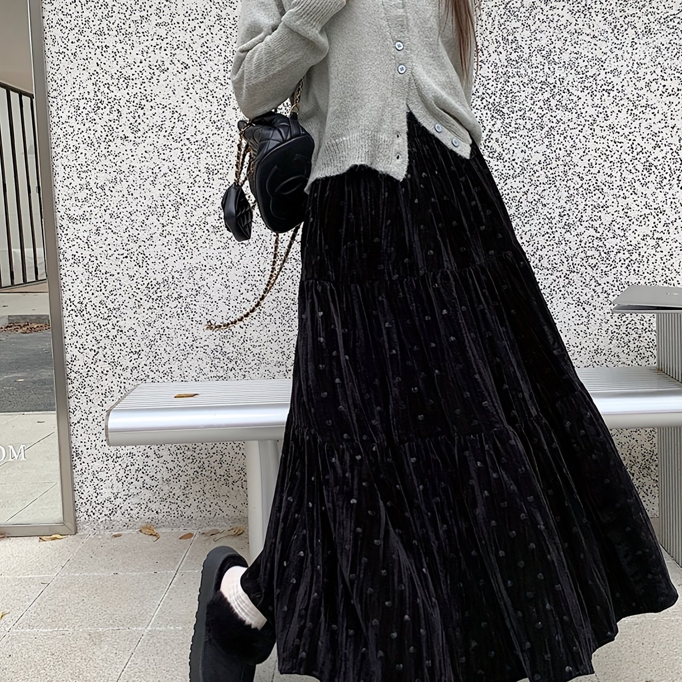 TEMU 러브 벨벳 스커트 하이웨스트 플리츠 케이크 스커트 라지 스윙 스커트 여성용