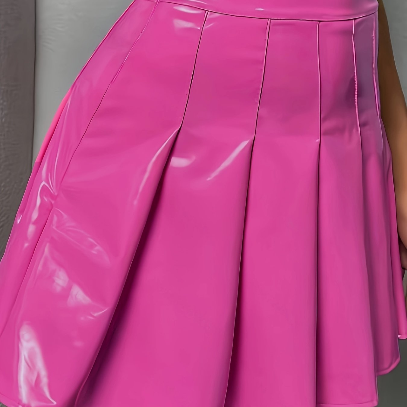 TEMU 플러스 사이즈 - 플러스 사이즈 - 디렉셔널 52315# 엘레강스 인조 가죽 스커트, 하이웨스트 및 플리츠, 플러스 사이즈 미디 스커트