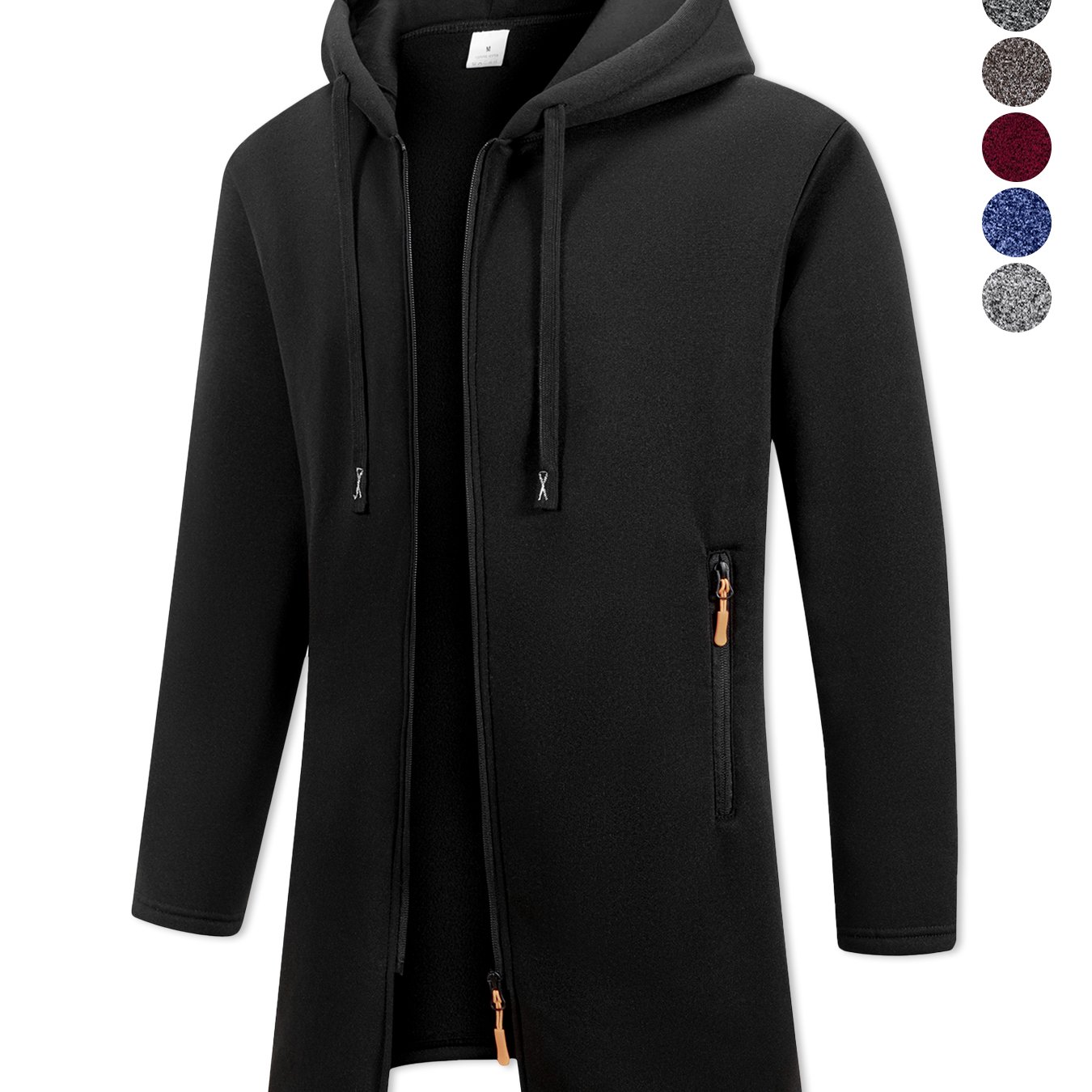 TEMU 싱글 아이템 - 남성용 스타일리시 캐주얼 트렌치 코트, 가을/겨울 남성용 재킷, 지퍼 포켓이 있는 캐주얼 아웃도어 재킷, 단색 캐주얼 트렌치 코트 (가을/겨울용), 드로스트링이 있는 후드, 따뜻하고 기모 안감, 편안한 기모