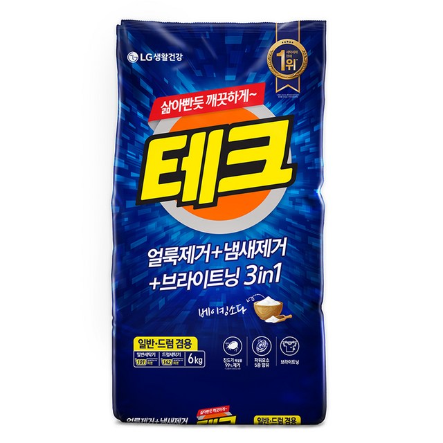[엘지생활건강]테크 3in1 분말세제 세탁세제 일반드럼 겸용 리필 6KG