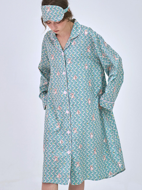 [이루시다] 텐셀 모달 원더랜드래빗 패턴 긴팔 원피스 여성 잠옷
