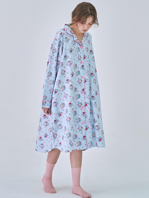[이루시다] 텐셀 모달 엔틱플라워 패턴 긴팔 원피스 여성 잠옷