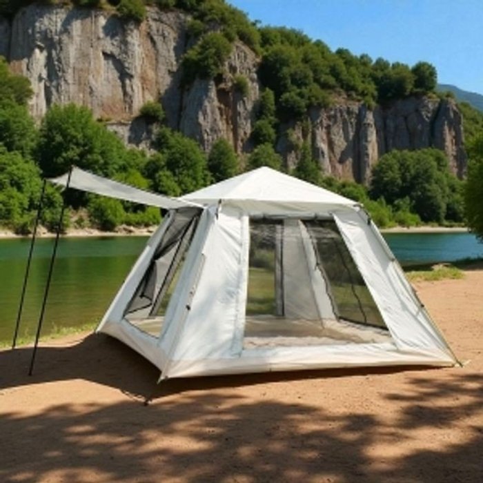 녹원 원터치텐트 전체개방 그늘막 육각 대형 돔텐트, 혼합색상, 3-4인용