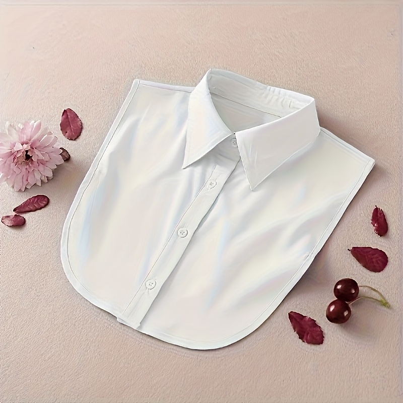 TEMU 여성용 V넥 블라우스, 탈착 가능한 칼라 - 미끄럼 방지 디자인, 버튼 업 프론트, 긴 소매, 화이트, 봄/가을/겨울에 완벽한 다용도 패션 액세서리, 여성용 화이트 셔츠, 여성용 화이트 셔츠, 탈착 가능한 칼라, 여성용 칼라