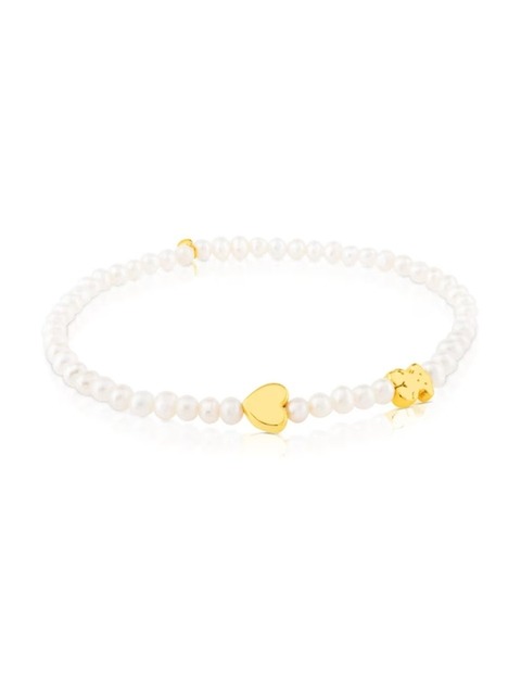 [토스] [TOUS] 18K 골드 스위트 돌스 XXS 베어 & 하트 모티프 진주 팔찌 1000127100