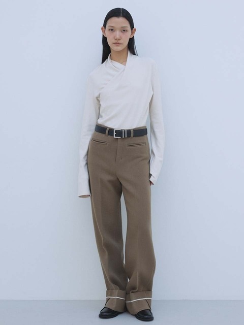 [메종마레] 턴업 투페이스드 울 팬츠, 베이지