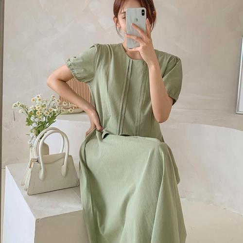 여자 핀턱 페이크투피스 에이라인 롱원피스