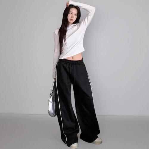 [다잇템]여성용 넓은 드로우코드 트랙팬츠 캐쥬얼 밴딩