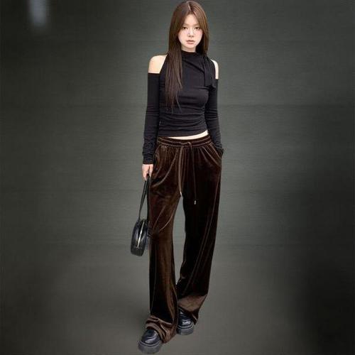 [신상오픈런]여성용 레이스 벨벳 트랙팬츠