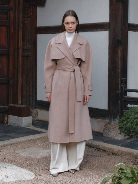 [뮤제] 다이애나 메리노 울 핸드메이드 트렌치 코트_핑크 베이지