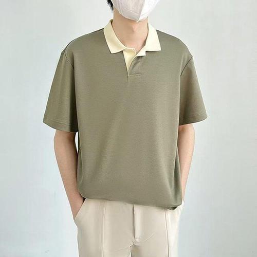 이지 남자이지웨어 트리플컬러 데일리 세련된 숏티 네크라인 탑