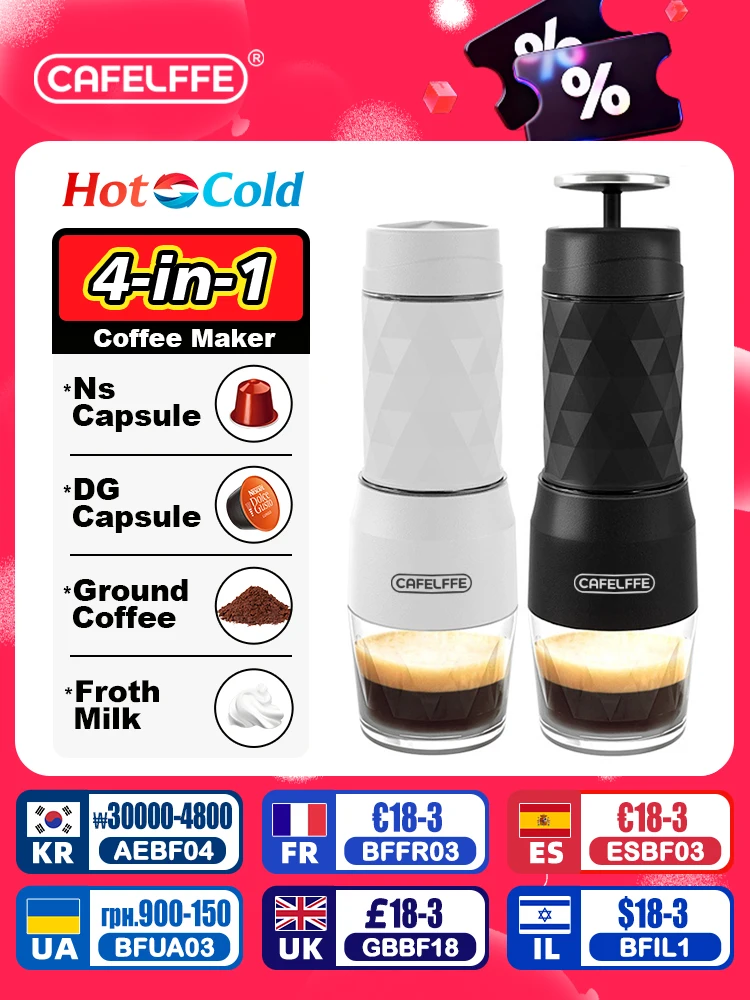 Cafelffe 3인1 휴대용 커피 머신, 핫/콜드 수동 에스프레소 메이커, 캡슐 및 그라운드 핸드 프레스 브루어, 하이킹 여행, 연인과 아빠, 엄마를 위한 선물.