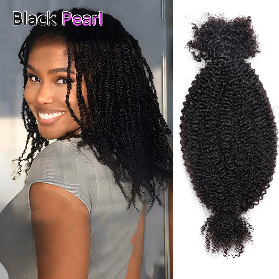 블랙 펄 아프로 킹키 트위스트 크로셰 브레이딩 헤어 100% 인모 번들 곱슬머리 인모 벌크 1개 아프로 킹키 벌크 헤어