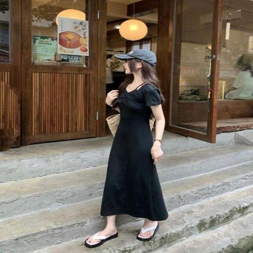 [에이치플러스몰]여자 여름 모던 꾸안꾸 아이템 트임 셔링 슬림 원피스