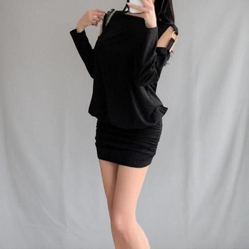 [신상오픈런]여성 어깨트임 루즈핏 골드링 셔링 미니 드레스