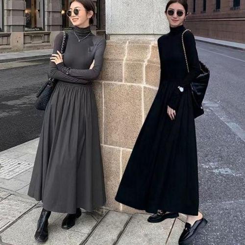 빅사이즈~150kg 여성 캐주얼 맨투맨 레이스 롱스커트 데일리 박시핏 도톰 기모 롱티 롱원피스