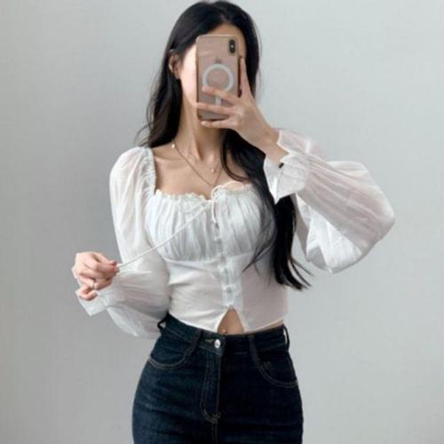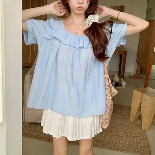 시즌 신제품 여성용드레스셔츠 하프티 베이직 러플 톱셔츠 WFJIWXW
