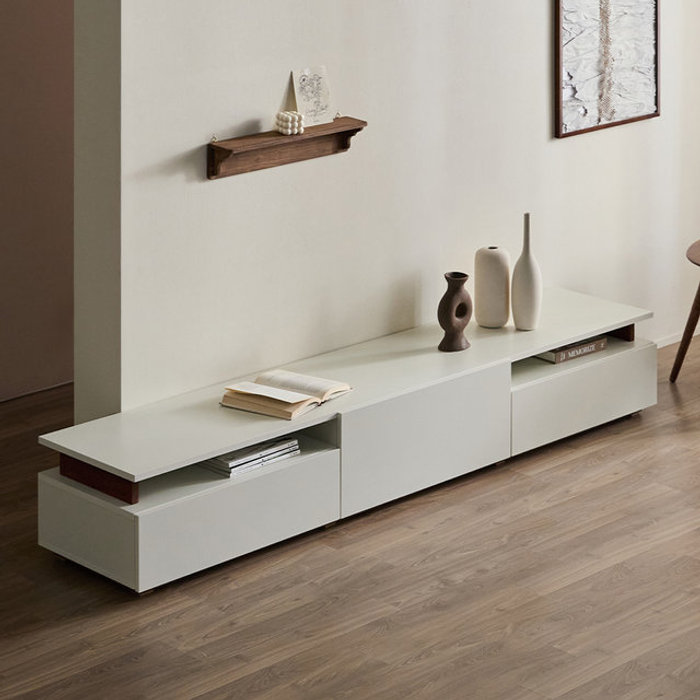 [바로방 가구]샬롯 익스텐션 TV 거실장 확장형 높은 티비다이 선반 받침대 1600
