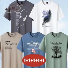 1+1+1+1+1 남성용 빅사이즈 여름용 면 반팔루즈핏 티셔츠 5팩 120KG까지 (5종세트)