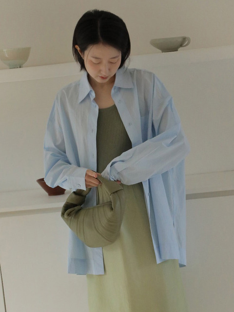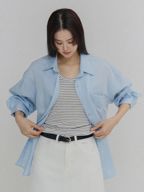 [티엔느] 르메 실키코튼 셔츠(+나시 세트)_라이트블루